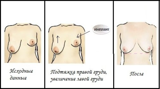 Исходя из индивидуальных особенностей организма пациентки и причины асимметрии молочных желёз, хирург будет подбирать один из методов вмешательства, который посчитает наиболее эффективным.