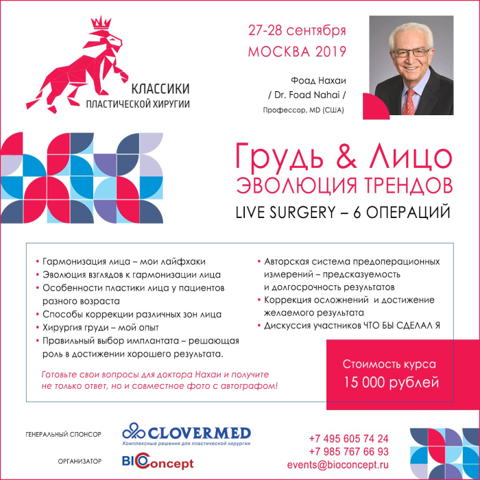 27-28 сентября приглашаем вас на обучающий курс «Классики пластической хирургии «Грудь & лицо. Эволюция трендов» с участием доктора с мировым именем, профессора Фоад Нахаи (США).