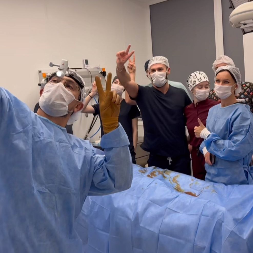 Участниками интенсива стали 8 пластических хирургов из Москвы, Санкт-Петербурга и Махачкалы. Для их полного погружения в практическое обучение Варданом Хачатряном было выполнено 4 показательные операции по повторной маммопластике: реэндопротезирование с капсулярной контрактурой и без, субмаммарным и трансареолярным доступам.