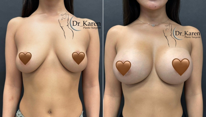 Пациентка доктора Карена Пайтяна до и после увеличения груди. Импланты 400 ml