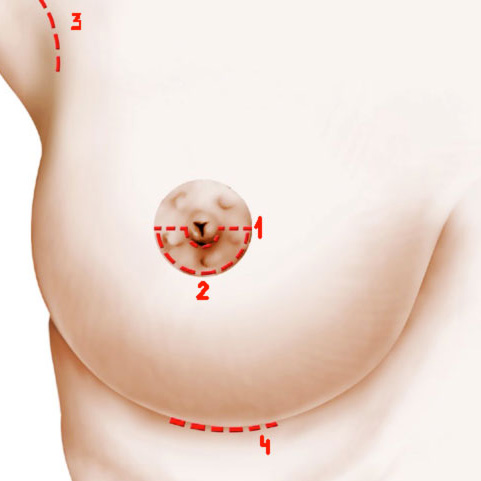 Установка грудных имплантатов во время увеличивающей маммопластики, как правило, производится через 3 вида доступа: